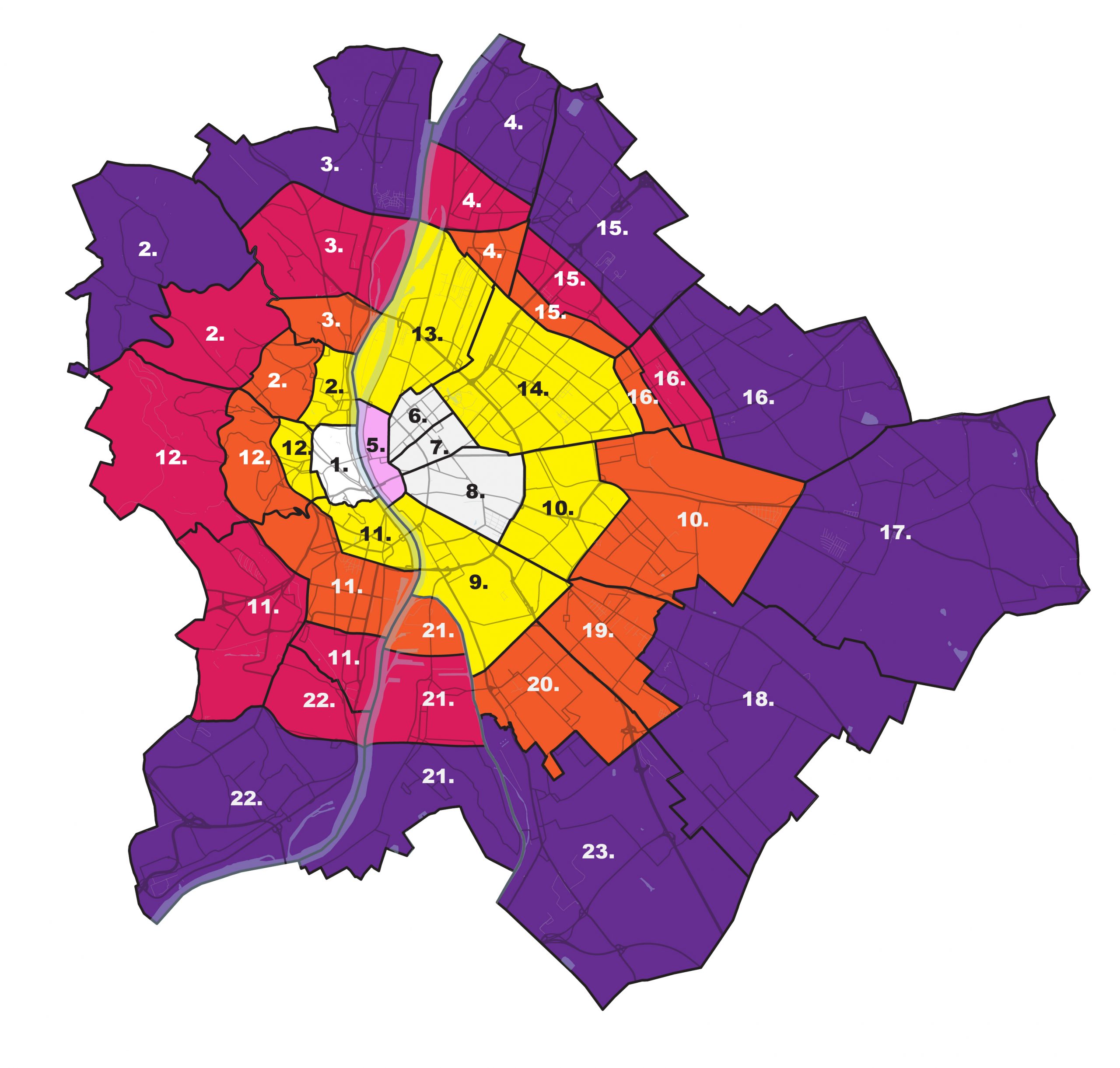 | Zónák | Biciklis Motoros (Ft) | Autós (Ft) |